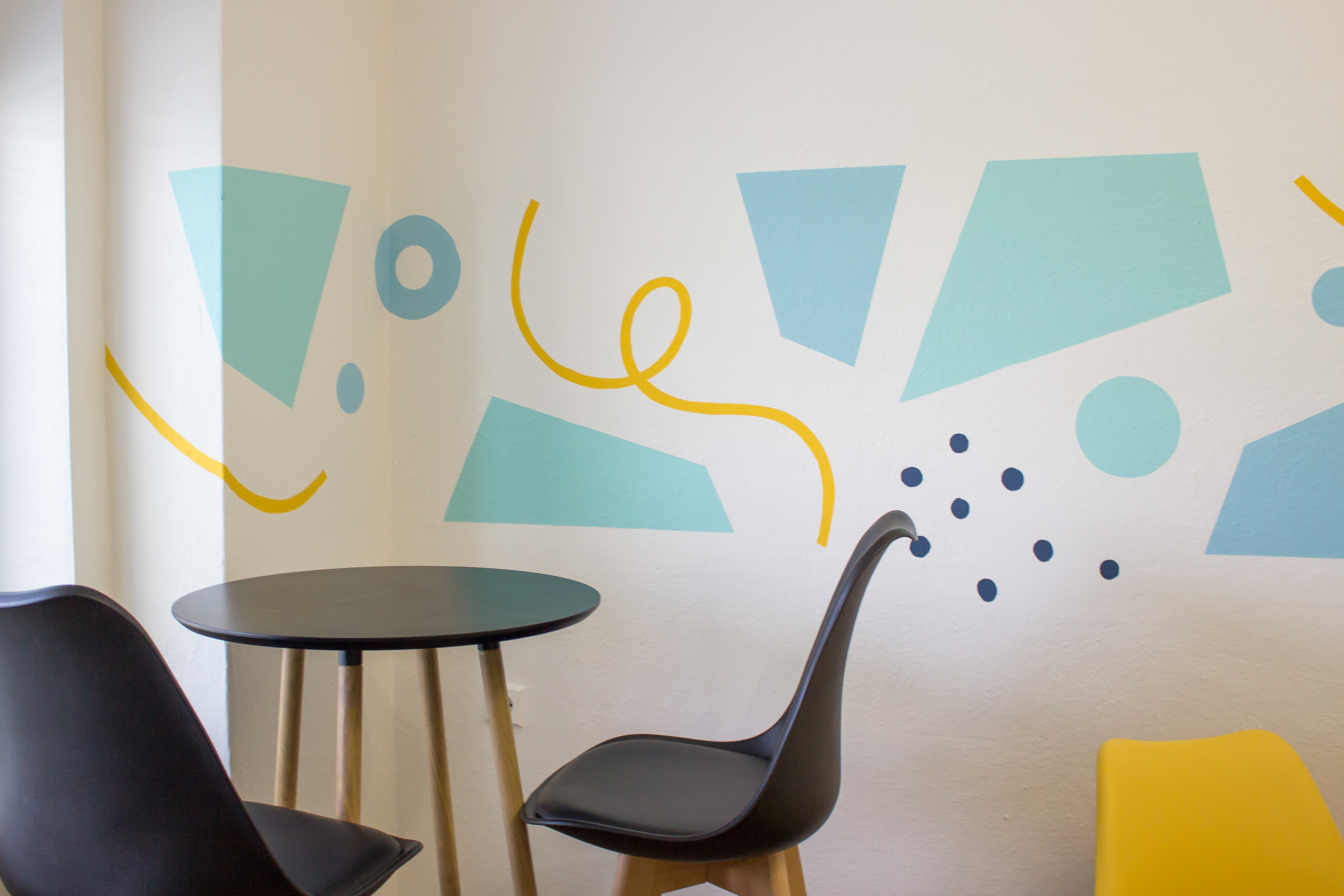 Motif is a pattern of geometric shapes that revolves around the whole room.